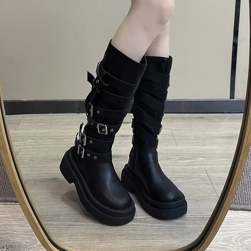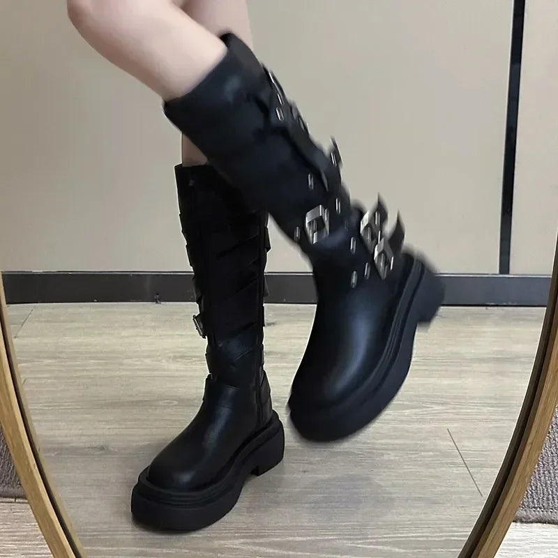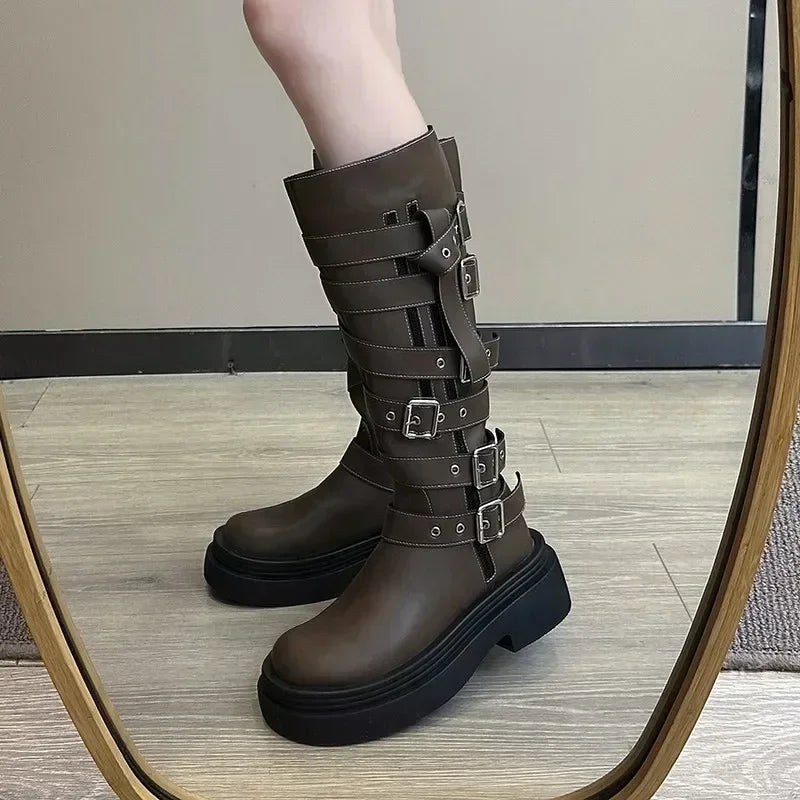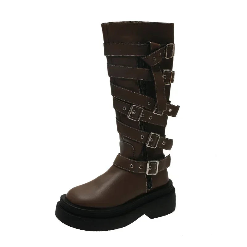 The Ariana boots because you walk it like you talk it. Move on in these platform, round-toe calf boots with a buckles.