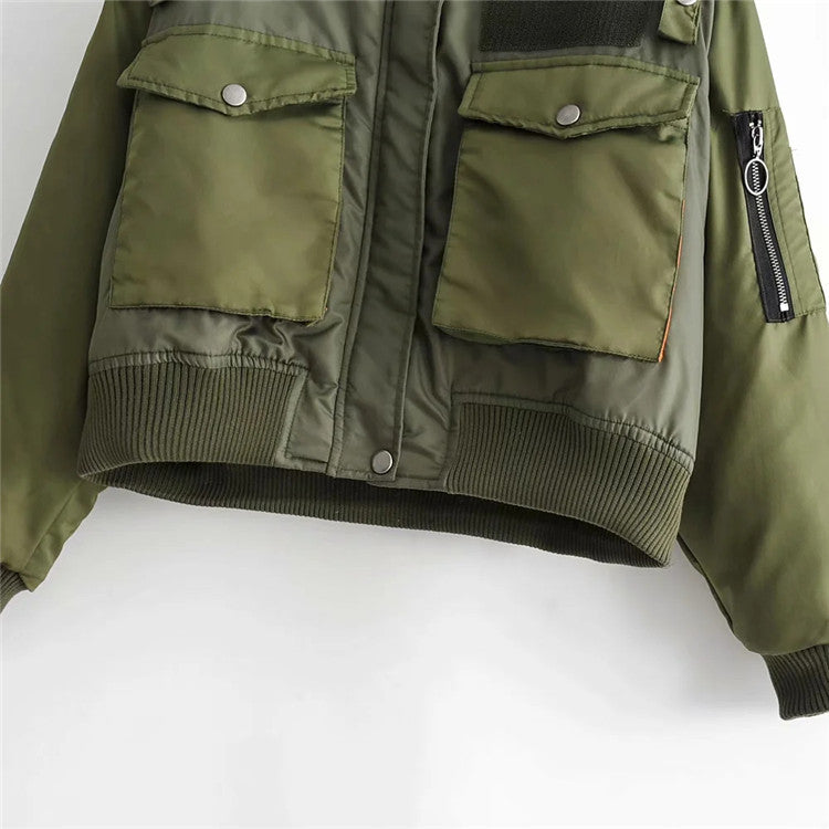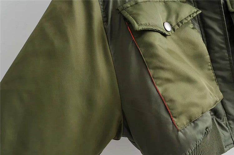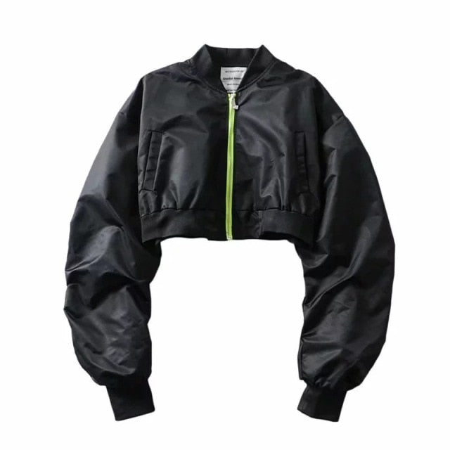 The Army Princess Bomber because you're a baddie on the outside good on the inside. Make 'em guess in this solid, cropped bomber jacket with long sleeves and a zipper closure and pockets.
