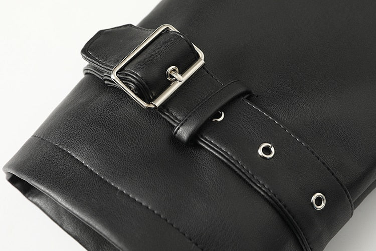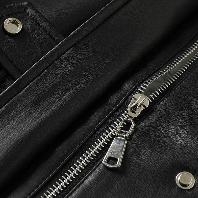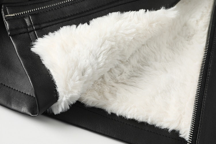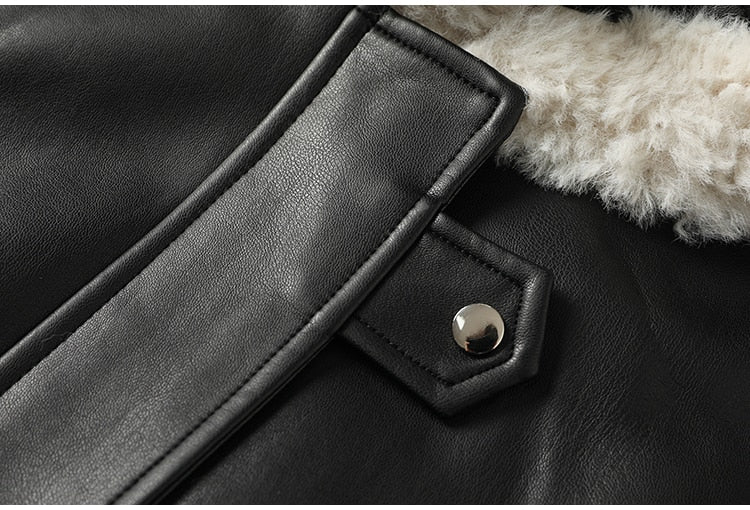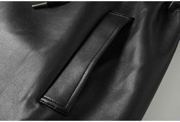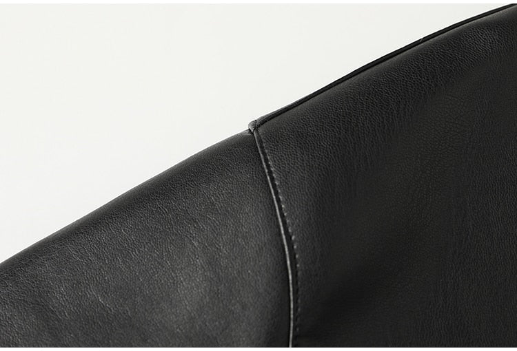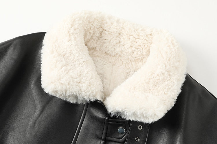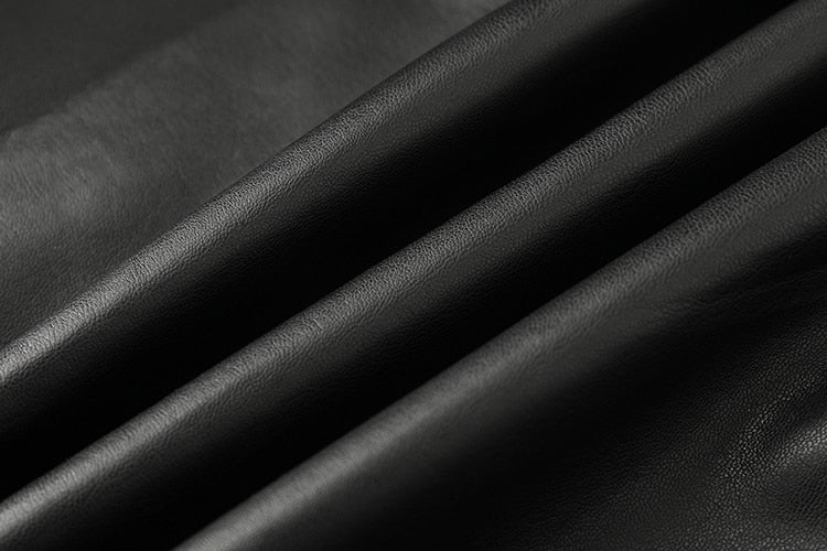 The Black Sheep Coat because you BAAAD. Break the rules in this solid, leather zip down coat with a wool-lined interior, a drawstring waist , a turn down collar and wrist detailing.