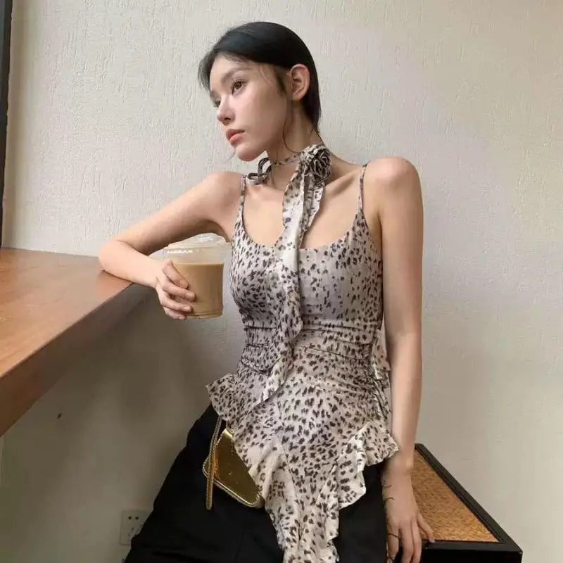The Cats Meow Top because you're a pretty kitty. Make 'em purr in this printed, leopard tunic with ruffles and an asymmetrical hem.