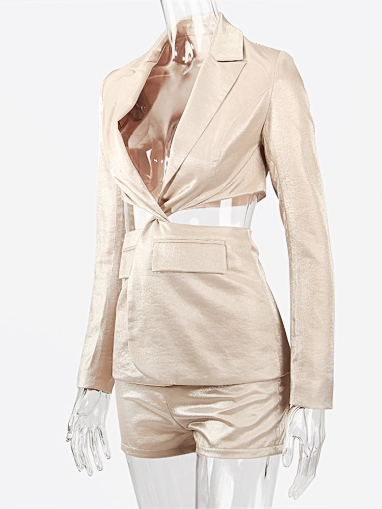The Champagne Mami Set because you're expensive. Toast to that in this solid, collared blazer jacket with cut outs and matching shorts.