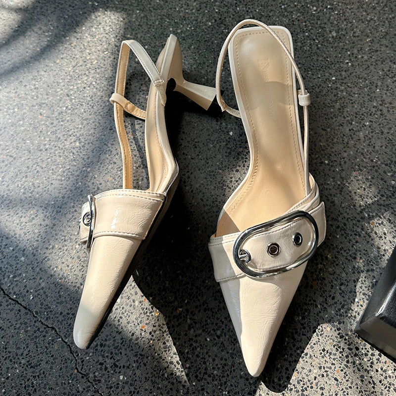 The Darcy Kitten Heels because you're classy. Be demure in these buckled kitten heels with a sling back strap and pointy toe.