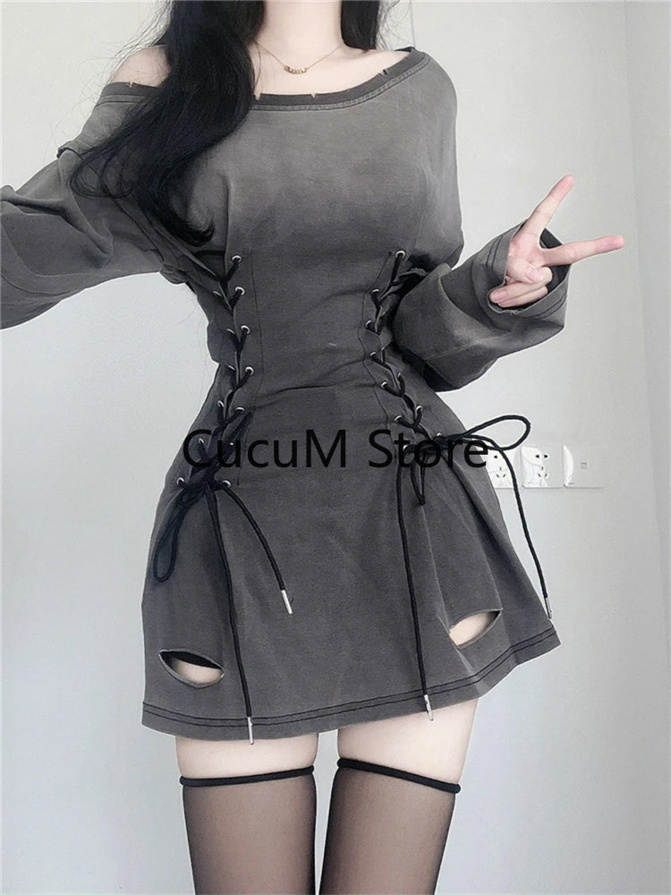 The Dig Your Grave dress because you slay everyday. Kill it in this solid, off the shoulder corset dress with long sleeves and ripped detailing.
