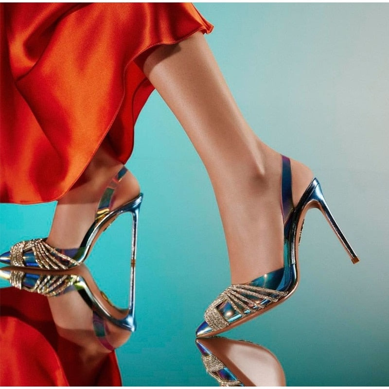 The Emery Heels because you're FANCY. Look lavish in these rhinestone slip-on heels with a pointed toe, sling back and thin heel.
