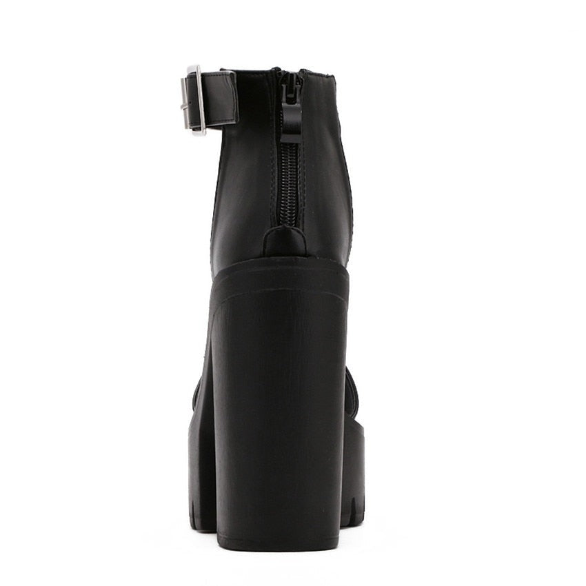 The Erika Heels because you stand strong in your sexy. Pose in these thick strap platform heels with lugged soles and an ankle strap.