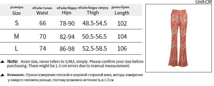 The Groovy Baby Flares because you're far out. Stay rad in these printed full length flared pants with a high waist and a button fly.