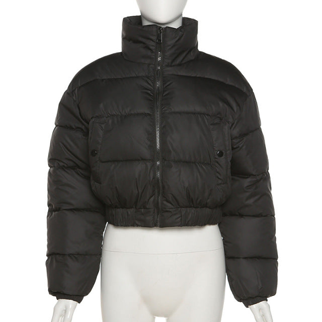In The Clouds Puffer because you're a daydream. Wake 'em up in this solid, cropped puffer jacket a zipper and pockets.
