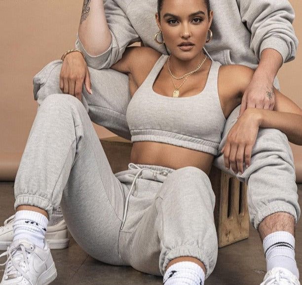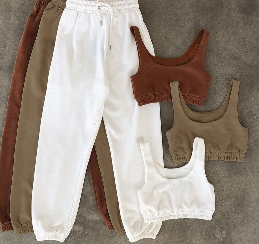 The Just Relax Set because you're too cute to stress. Kick your feet up in this comfy lounge-wear set with a sleeveless bra top and matching sweats.
