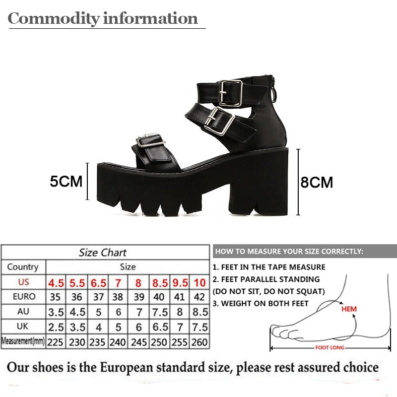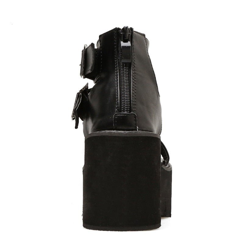The Peyton Sandals because you own the room. Strut your stuff in these solid, buckle strap sandals with a back zipper, open toe and chunky sole.