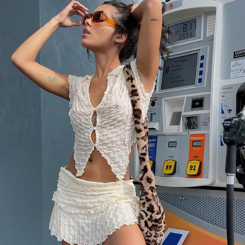 Then PixieGirl Top because you're always the first pick. Stay at the top of the list in this cropped, sheer v-neck shirt with a turn down collar and button down closure.
