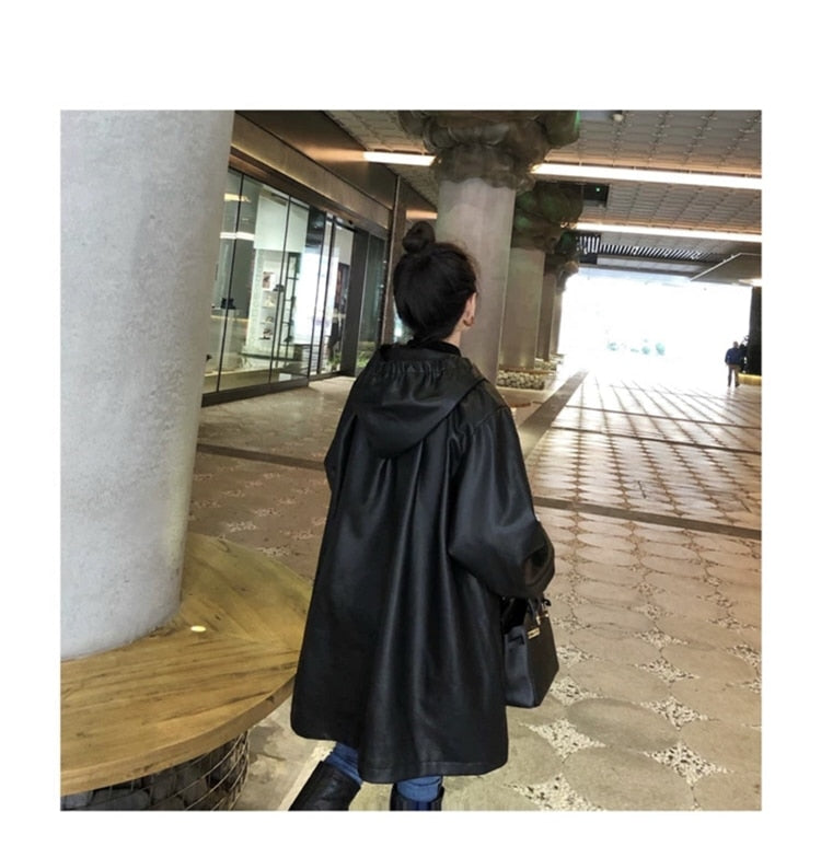 The Rain on Me Jacket because we watch the money fall down from the sky. Tell drop some cash in this over-sized A-line leather jacket with a hood, a zip-down closure and puff sleeves.