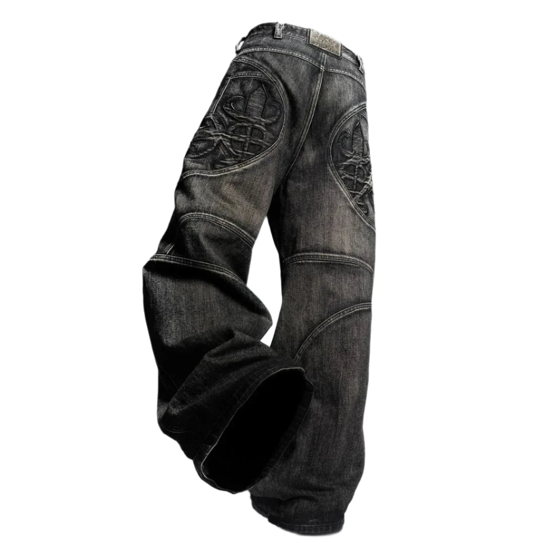 The Secret Society Jeans because you're IN. Be the leader in these oversized, wide-leg jeans with pockets and embroidery .