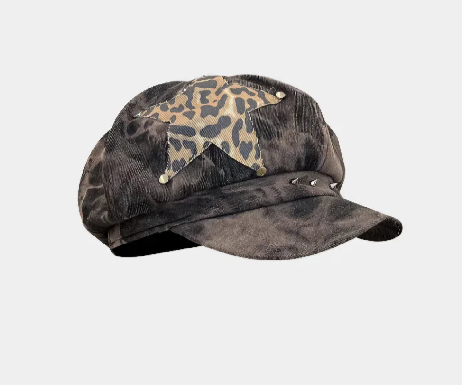 The Star Power Newsboy because you're a star. Shine bright in this solid newsboy hat with a leopard star detail.