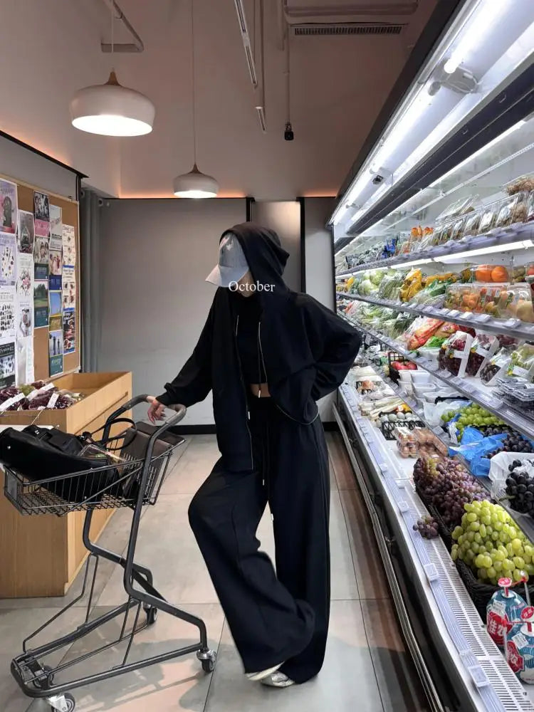 The Stay In because chill never looked so hood. Keep it cool in this solid, oversized, zip-down hoodie with matching wide-leg sweatpants.