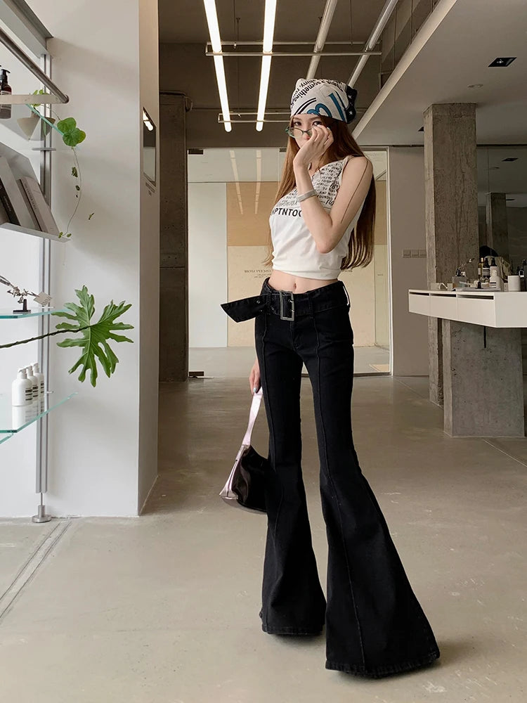 The Hipster Jeans because you know that being retro also means the ORIGINAL.Take it back in these high waist denim bellbotts with belt detailing