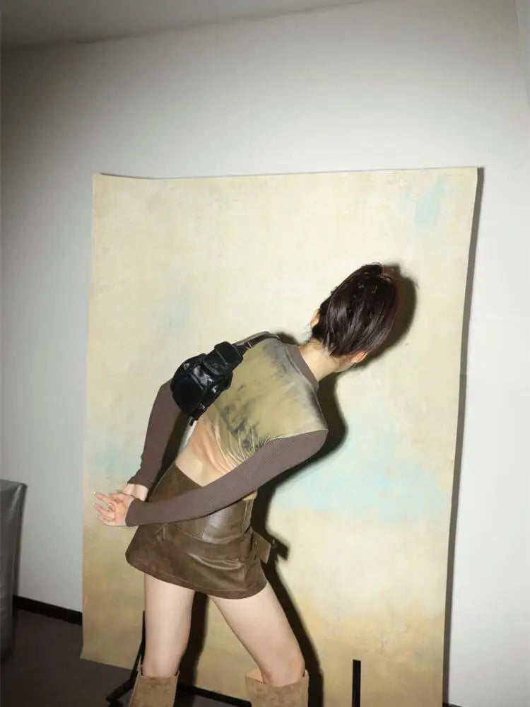 The Pussycat Top because you make them purr. Let out your inner kitten in this printed, long sleeve crop top with a round neck.