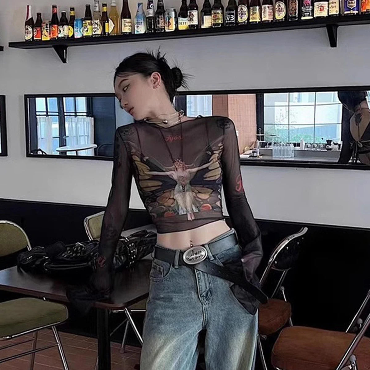 The My Metamorphosis Top because you're transformed. Act brand new in this sheer butterfly top with long bell sleeves.