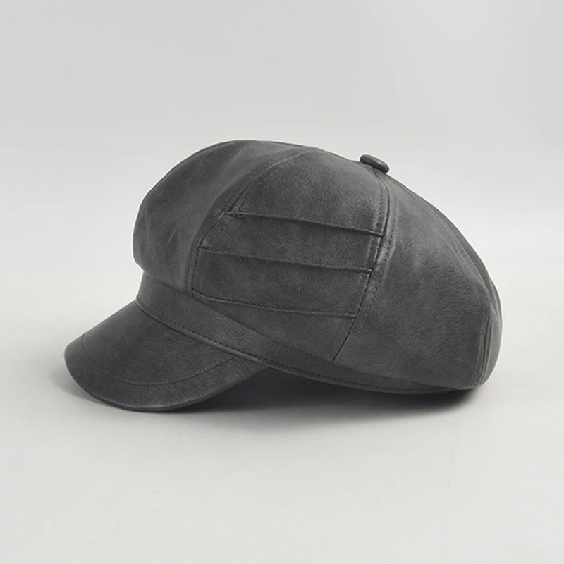 The Vixen Newsboy Cap because you belong on the big screen. Take the spotlight in this solid,leather newsboy cap with an octagonal shape.